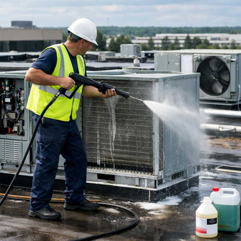 We provide professional commercial HVAC coil cleaning services in Arlington and throughout the DFW area, helping businesses maintain efficient, reliable, and properly operating HVAC systems. Our service removes dirt, debris, grease, and buildup from condenser and evaporator coils using commercial-grade equipment and safe cleaning methods.
